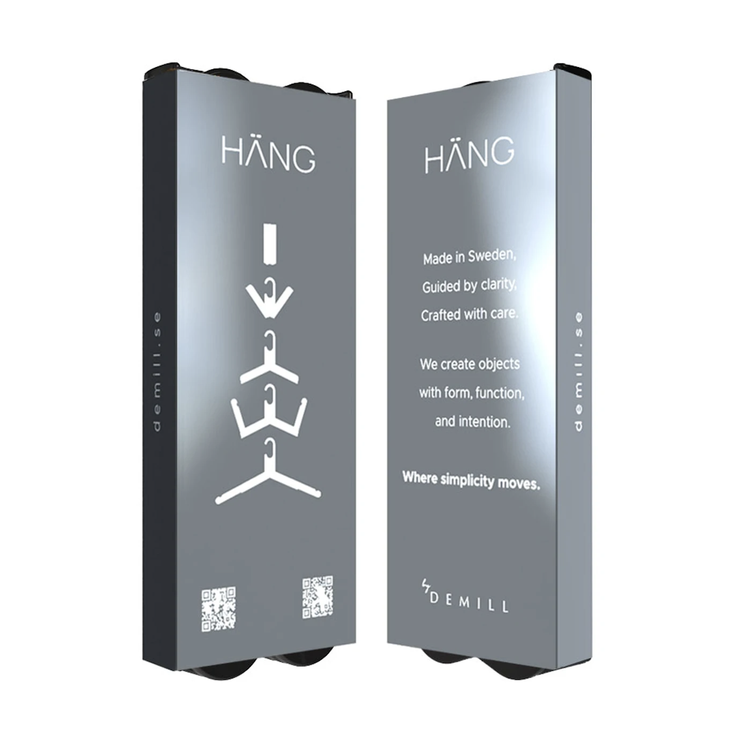 Tillverkad i Sverige av biobaserad copolyester (ECOZEN™ T110), erbjuder HÄNG hög hållbarhet, kemikalieresistens och lång livslängd. Den är konstruerad för upprepad hopfällning utan att spricka eller deformeras – perfekt för daglig användning. Den solida varianten i svart eller vitt ger ett stilrent och exklusivt uttryck som förstärker varumärkesupplevelsen.