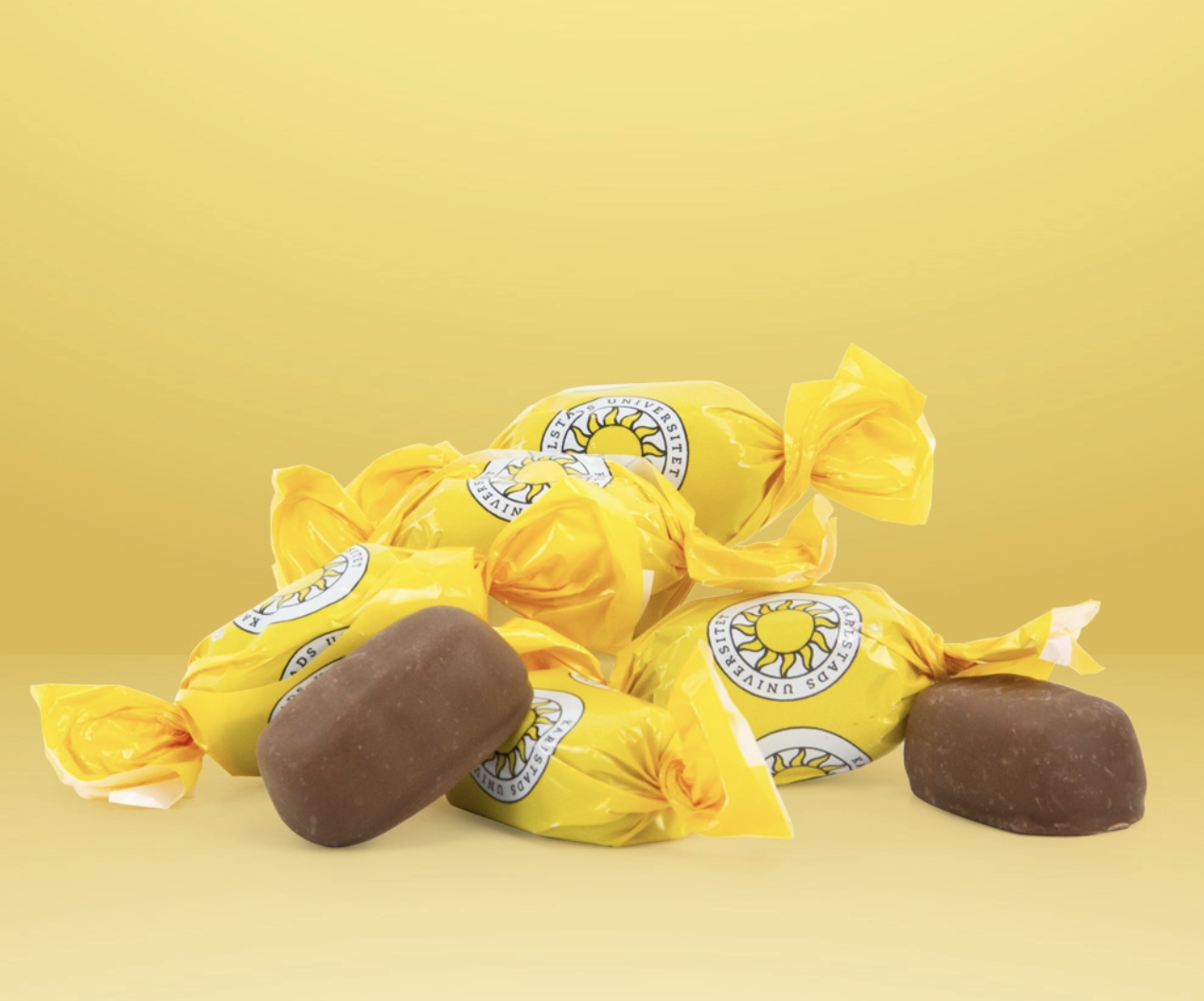 Chokladöverdragna smörkolor har alltid varit uppskattade som reklamgodis och med er logotyp blir det en tydlig avsändare i alla lägen. Finns nu med både smörkola och lakritskola som fyllning! Titta gärna in under Förpackningar för tips om hur du kan förpacka dina kolor och förhöj din profilering när du ställer ut på mässa eller konferenser!